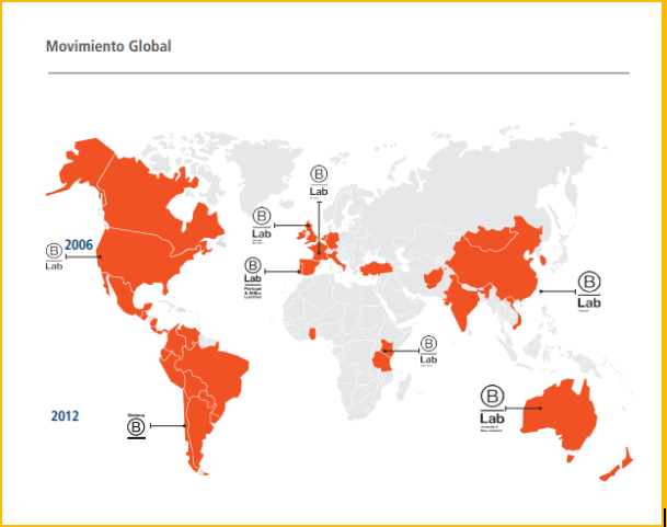 En 2012, nace “Sistema B” en América Latina, una alianza con “B Lab” para expandir el movimiento en la región. Otros proyectos similares, como B Lab UK, B Lab Europe y B Lab Singapore, se extienden globalmente.