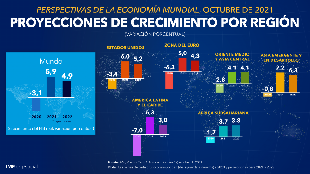 Sin embargo, el pronóstico de crecimiento para el 2022 será menor, debido principalmente a las dificultades de los países en desarrollo para vacunar a su población contra el covid-19